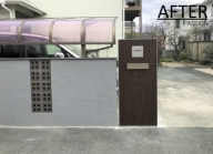 空間に統一感がでるように、門柱横の壁は、その時施工させていただいた壁と同じデザインで施工させていただきました。